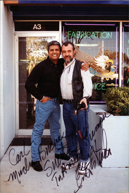 | About the Author Up until his recent activity curtailment brought about by congestive heart failure, septuagenarian Carl Caiati has been an active motorcyclist and prolific author in the custom bike field, writing upwards of twenty books on such varied subjects as Harley Davidson, bike customizing and painting, airbrushing and photography. He is an accomplished airbrush artist and pin striper. authoring several major books on the art and the craft of motorcycle and automobile aesthetics. He has written three books on Harley Davidson subjects as well as a major feature article for Popular Mechanics on Harley Davidson. His photography has graced the pages of Petersons Photographic, a Ziff-Davis Photographic Color annual and various video-graphic magazines. His air art has appeared in Airbrush Digest and he has authored four major treaties on airbrushing, one of which was translated into German and marketed in Germany. At present, the author resides in Rincon, Georgia where the atmosphere and weather are conducive to his interests and pursuits, which consist of photography, pin striping, and the creation of container cactus gardens. -- From Unfinished Caiati work, "The Vanishing Breed" |